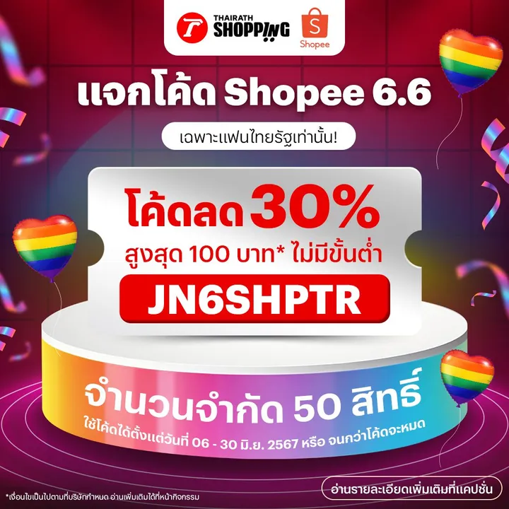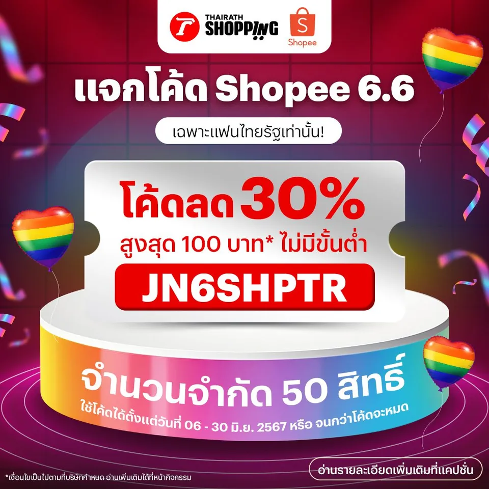 โค้ดส่วนลด Shopee 30% กรอกโค้ด THRTNV24 ไม่มีขั้นต่ำ ลดสูงสุด 100 บาท